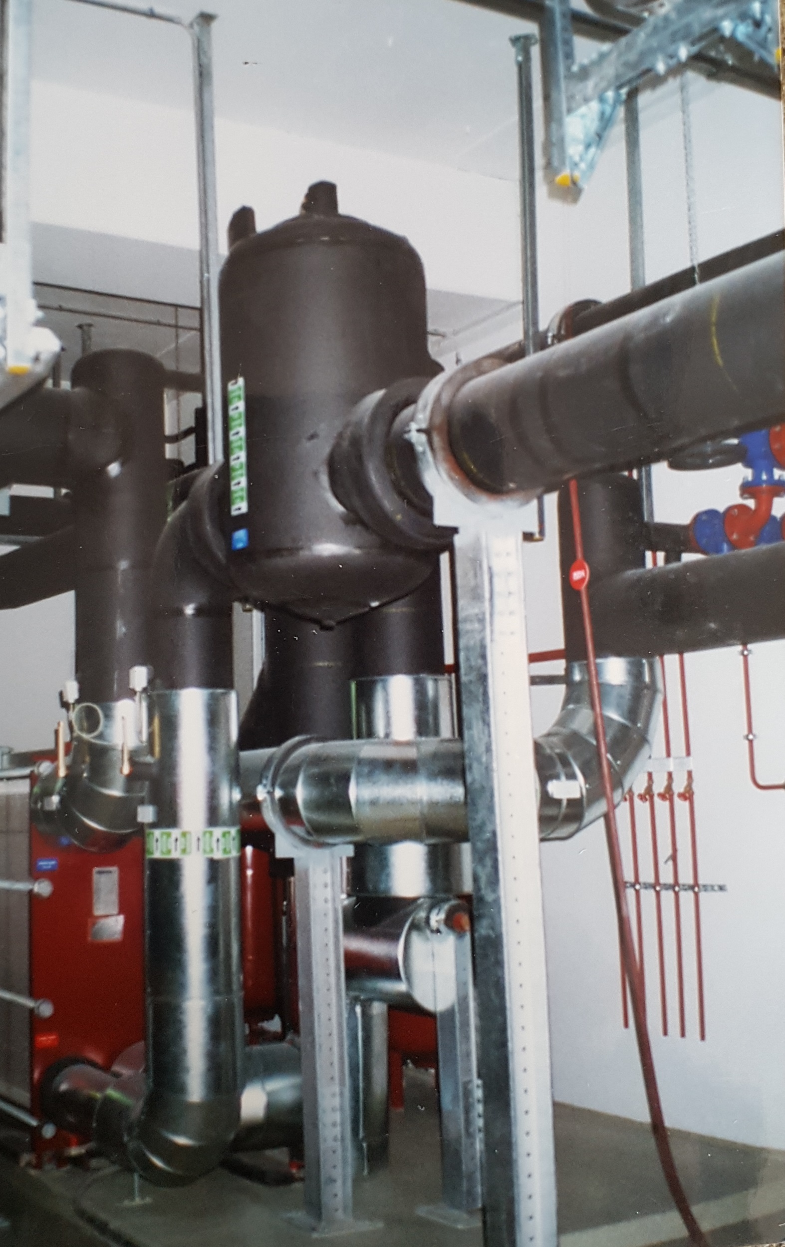 Kältezentrale Industrie Ausführung mit Kältedämmung, im Stoßbereich mit verzinktem Stahlblech ummantelt, im oberen Bereich ohne Ummantelung |