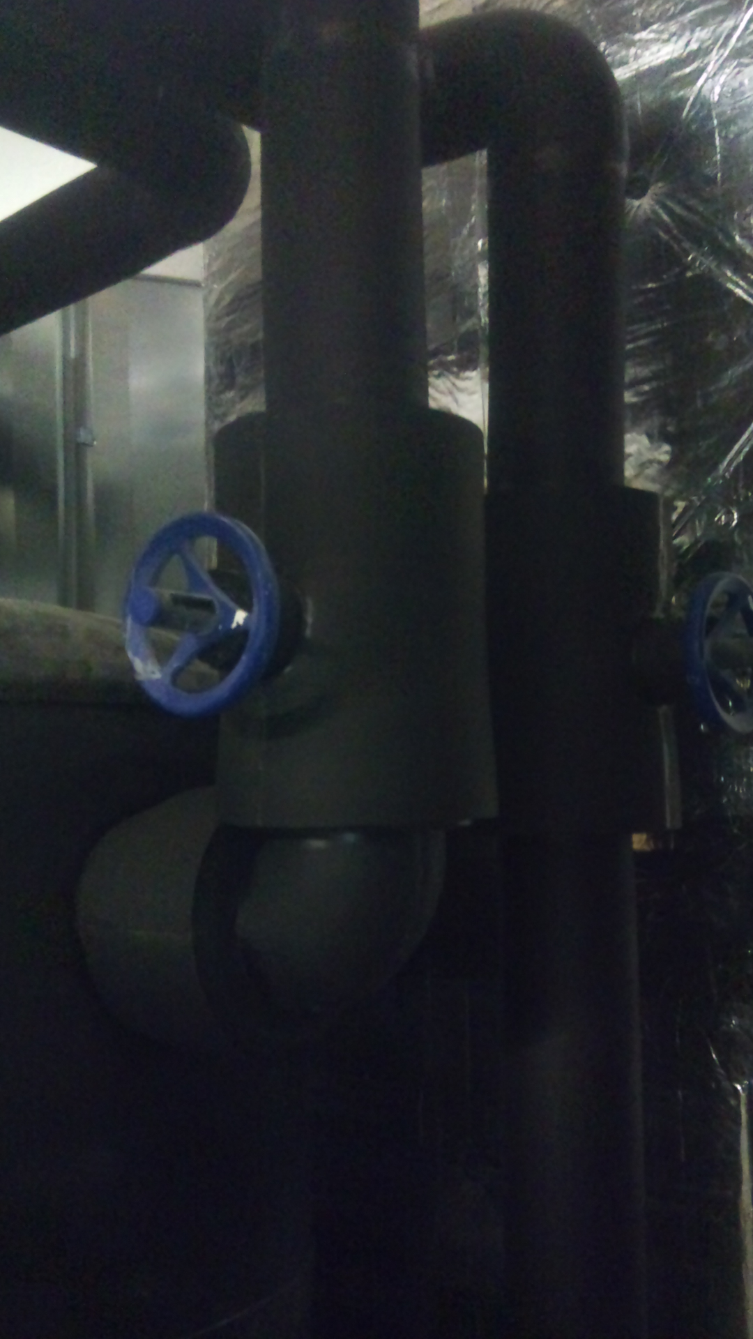 Kälteanlage Industrie Ausführung mit Kältedämmung, im Stoßbereich mit verzinktem Blech ummantelt. |